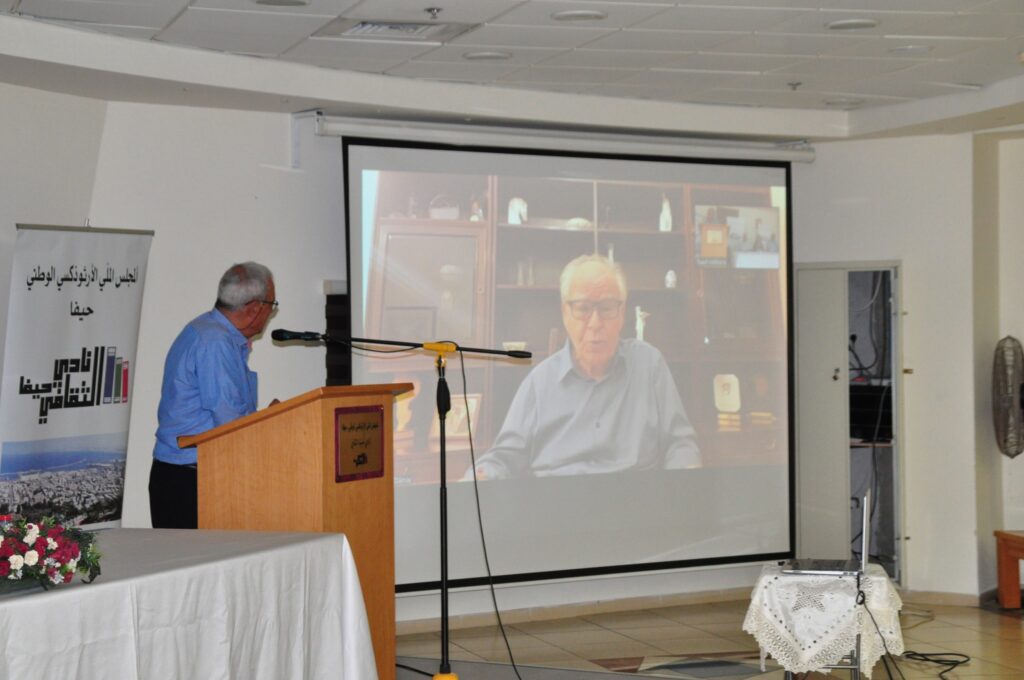 في الحادي والعشرين من شهر آب (أغسطس) 2025م، شهدت قاعة كنيسة القدّيس يوحنّا المعمدان الأرثوذكسيّة في حيفا، أمسية أدبيّة أقامها نادي حيفا الثّقافيّ، استضاف فيها النّاقد الكبير الدّكتور فيصل درّاج، الّذي أطلّ على الحضور عبر تقنيّة “زوم” لإشهار كتابه الجديد: “كأن تكون فلسطينيّا – شذرات من سيرة ذاتية”.