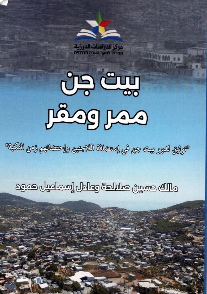 طالعنا الكاتبان والأُستاذان العزيزان مالك حسين صَلالحة وعادل إِسماعيل خطَّار حمُّود، بكتاب فريدٍ من نوعه، بحُلَّة قشيبةٍ جميلةٍ، تظهر فيها صورة بيت جن الأَبيَّة في أَعالي جبل الجرمق في جليل بلادي، يحكي لنا بشكلٍ توثيقيٍّ محكيٍّ عن بيت جن وأَهل بيت جن حين استضافوا اللاجئين والنَّازحين وأَحسنوا وفادتهم وأَبدعوا في احتضانهم وعنايتهم وحمايتهم من مجهول مكروهٍ، حيث تقاسموا معهم لقمة العيش بكرمٍ وجودٍ وتفانٍ زمن النَّكبة، تحت عنوان “بيت جن ممرٌّ ومقرٌّ”..