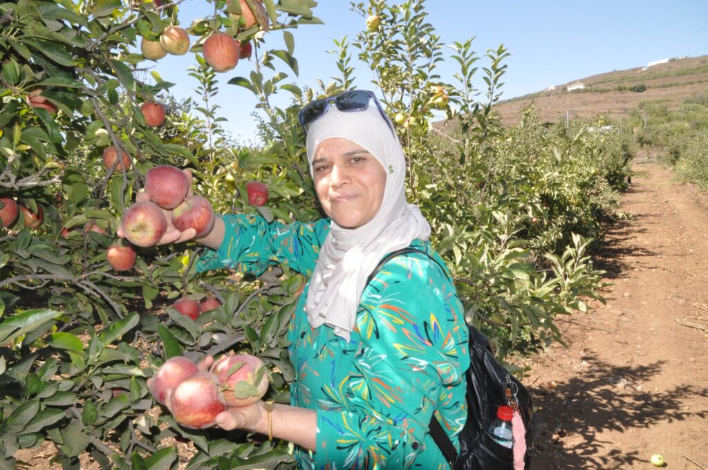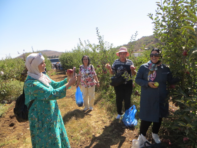توجّهت الرّحلة بعد ذلك إلى قلب الطّبيعة، حيث اجتمع المشاركون في بستان تفاحٍ يانع، يفوح منه شذى الأرض وعبير الثّمار.