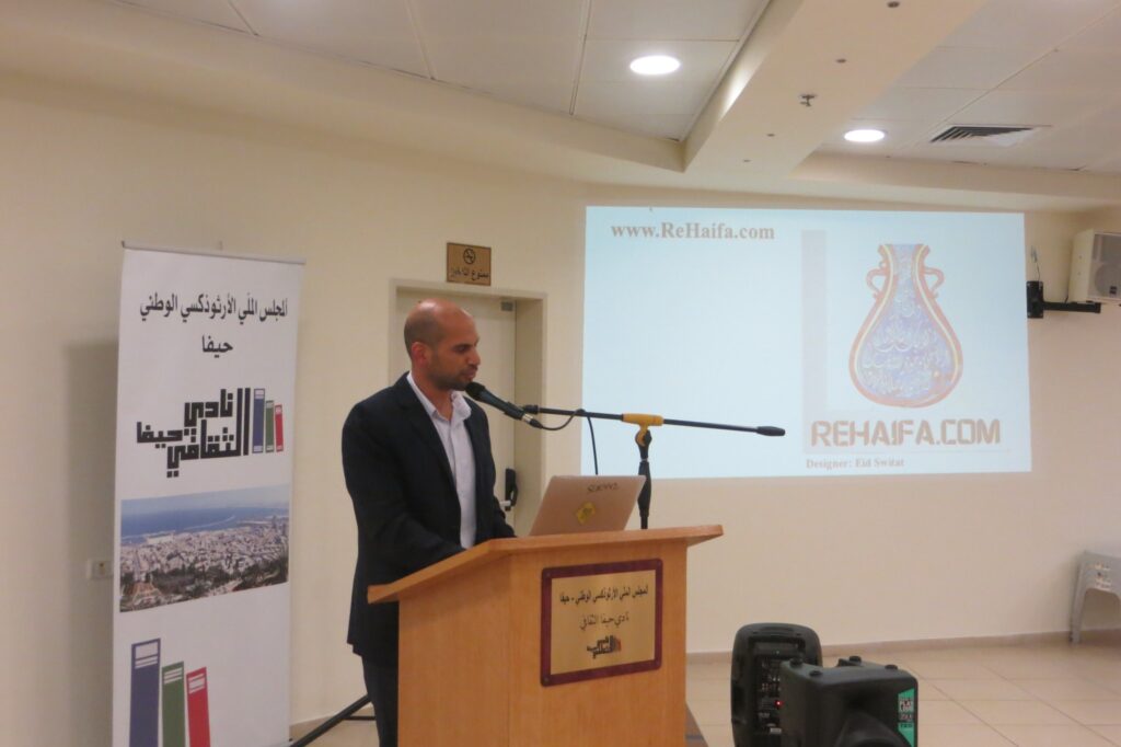 استهلّ الدكتور عروة سويطات محاضرته بالحديث عن مشروعه البحثيّ حول حيفا وآثارها المادّيّة والمعنويّة، منوّها إلى اعتماده على مصادر متعدّدة، منها الذّاكرة الشّفويّة.