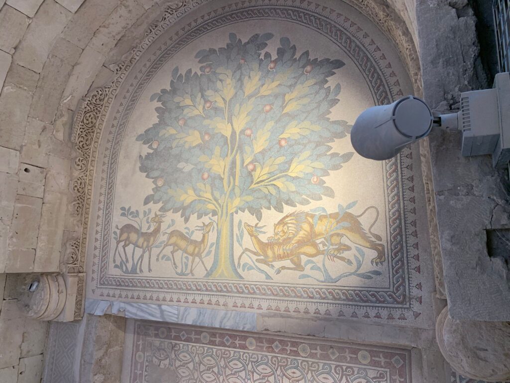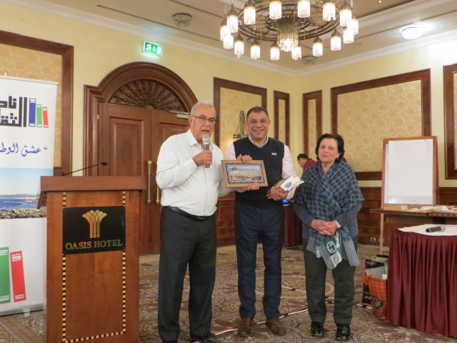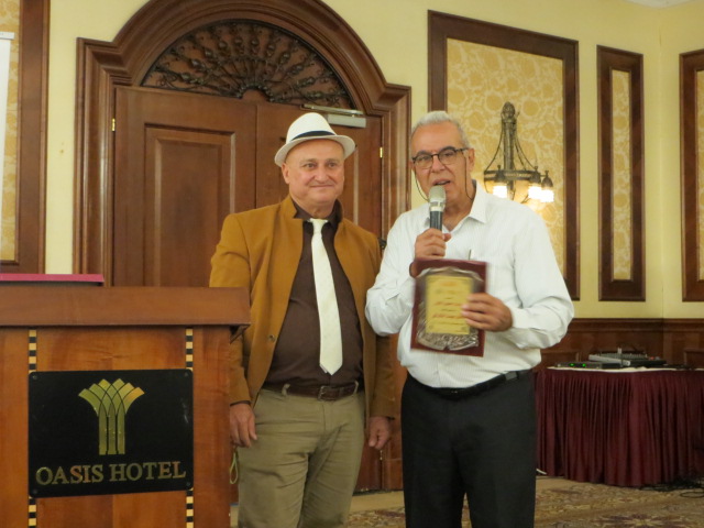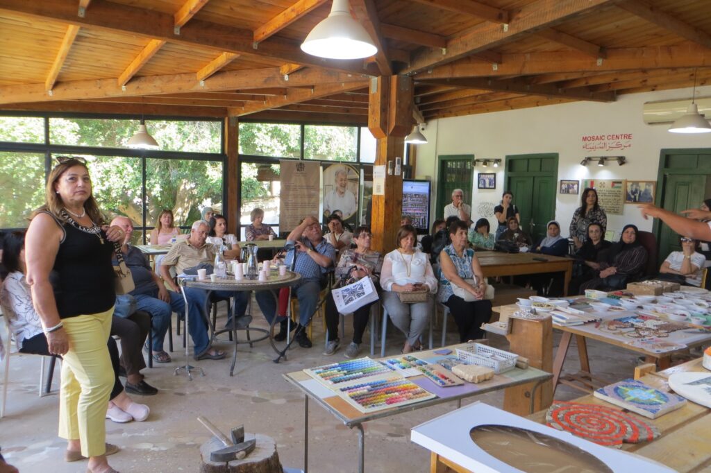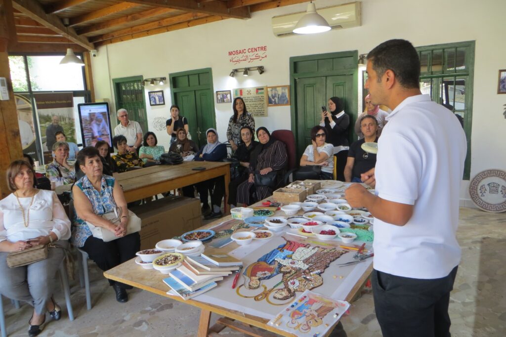 في اليوم الثّاني من الرّحلة، تمّت زيارة مركز الفسيفساء، وهناك قدّم الأستاذ نقّارة درع “عشق الوطن يجمعنا” للأستاذ إياد نجوم، مدير المركز، الّذي استقبل المشاركين بحرارة.