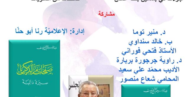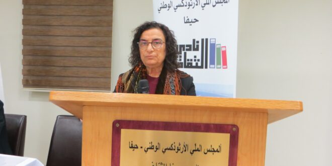 نادي حيفا الثّقافيّ يحتفي بالفنّانة المسرحيّة سامية قزموز بكري 10.04.2025- أقام نادي حيفا الثّقافيّ أمسية تكريميّة للفنّانة المسرحيّة والكاتبة سامية قزموز بكري، وذلك في رحاب قاعة كنيسة القدّيس يوحنّا المعمدان الأرثوذكسيّة، تحت رعاية المجلس الملّيّ الأرثوذكسيّ الوطنيّ في حيفا، وقد وثّق المصوّر فؤاد أبو خضرة بعدسته تلك اللّحظات المميّزة، مسجِّلا صورا للذّكرى. استهلّ الأمسية رئيس النّادي ومؤسّسه، الأستاذ المحامي …