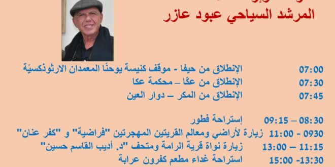 ضمن برنامج “عشق الوطن يجمعنا” يدعوكم نادي حيفا الثّقافيّ للمشاركة في رحلة ثقافيّة إلى منطقة الرّامة وما حولها