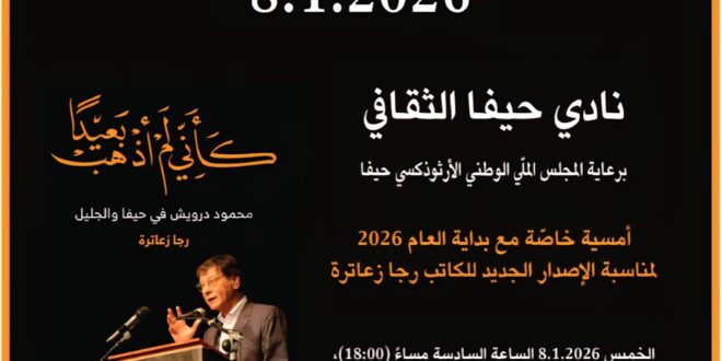 08.01.2026: د. هديل كيّال/”كأنّي لم أذهب بعيدًا – محمود درويش في حيفا والجليل”