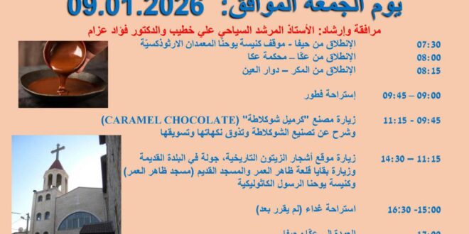 20 ديسمبر 2025م- في إطار دأبه المتواصل على ترسيخ قيَم التّواصل الفكريّ، وتجسيدا لرسالة الوفاء الّتي يحملها نادي حيفا الثّقافيّ تجاه رموز الإبداع الفلسطينيّ، زار وفد من النّادي الأديب توفيق فيّاض في بلدة “المقيبلة”؛ حيث ينزل ضيفا في بيت السيّد مصلح بطّاح؛ إبّان زيارته الرّاهنة للبلاد قادما من تونس الشّقيقة. وقد ضمَّ الوفد كلّا من الأستاذ المحامي …