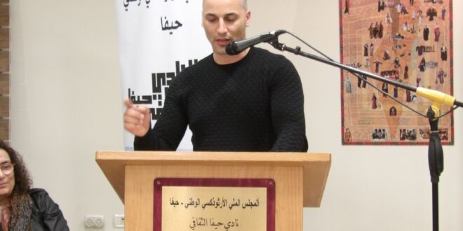 مساءُ الخير والمحبَّة والأمل.. رغمَ الألم والظلام الذي نعيشُهُ نجتمعُ اليومَ هُنا في هذا المكان المقدّس، الذي يشهد أنَّ نادي حيفا الثقافي قلعةٌ صامدة، شيّدها المحامي فؤاد نقّارة وزوجتُهُ سوزي؛ فكانت منذ سنواتٍ عديدة وما زالت تحملُ الهمَّ الثقافي لهذا البلد ولهذا الشعب وتقول: مساءَ كلِّ خميس، نحن هنا باقون، نحتفل ونُشهِر ونتغنّى بالإبداع الأدبي والثقافي والفنّي. …
