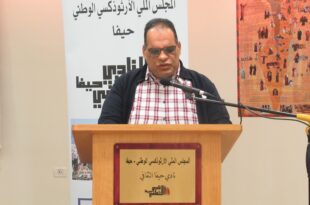 الأستاذ المحامي كميل مويس في أمسية إحياء ذكرى الشّاعر شكيب جهشان في نادي حيفا الثّقافيّ